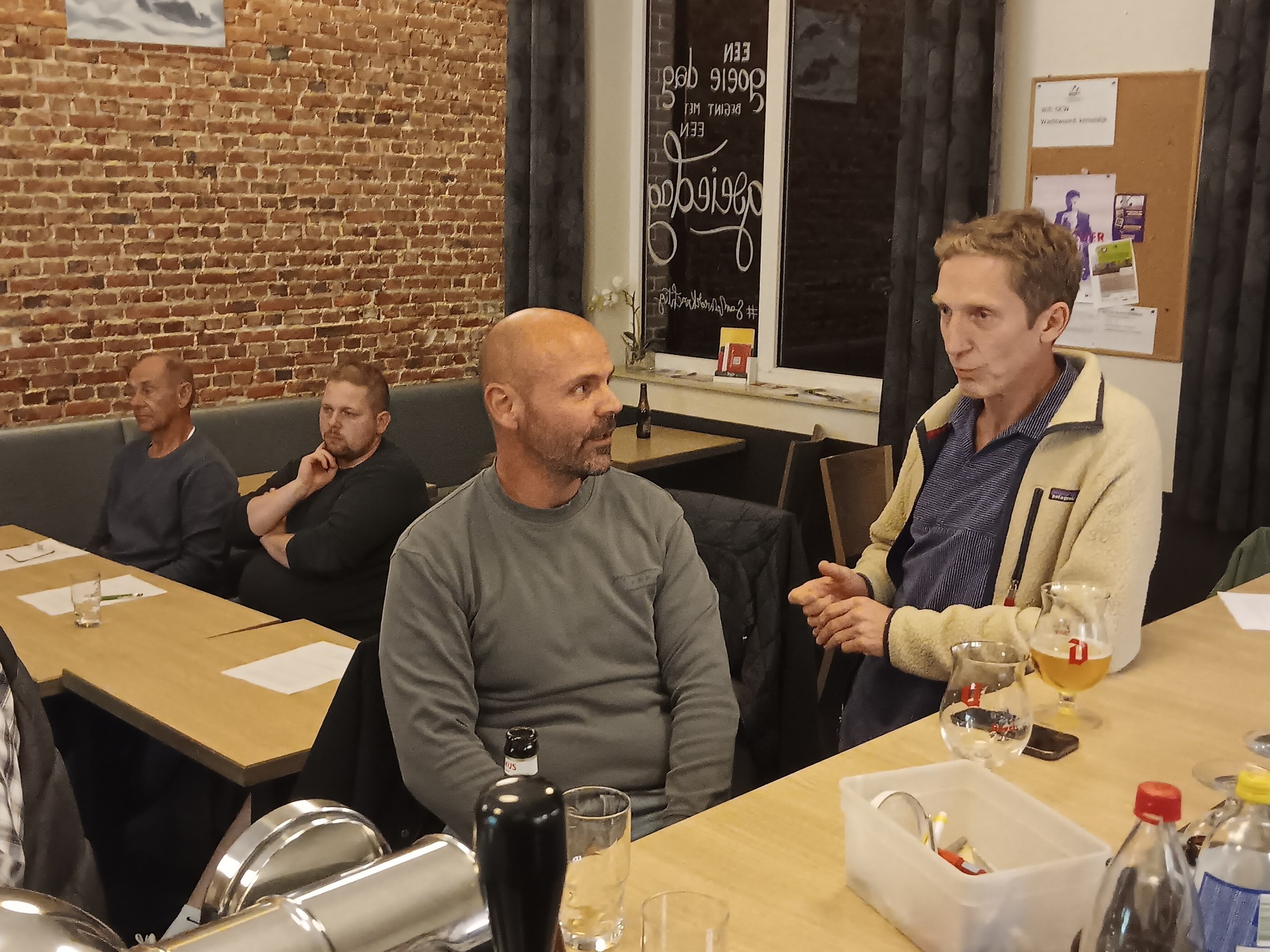 Jo en Dirk praten voor de vergadering even bij terwijl Ward en Erik de start van de bijeenkomst afwachten. Ledenvergadering K.SVGO