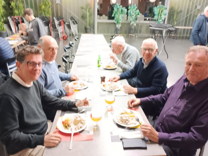 Lesgever Tom Dens, Gust en de andere opleiders genieten van een videe na de cursus. Prov cursus in Geel bij K.SVGO